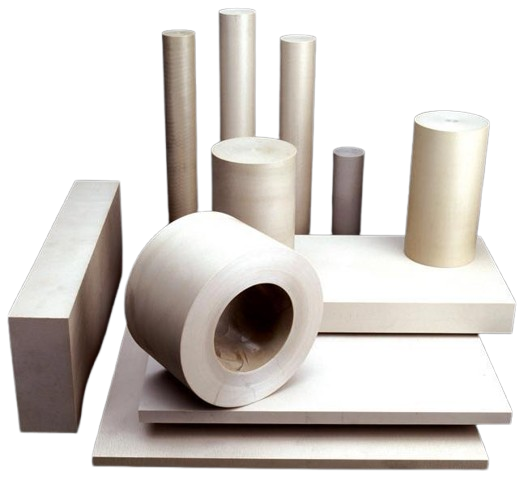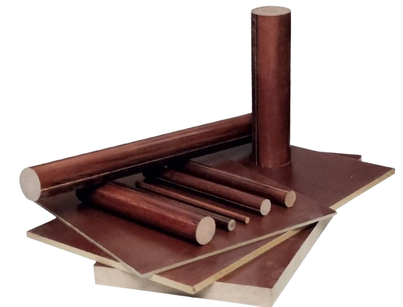 Thermosetting resin laminated with paper, cotton, or glass fabric.